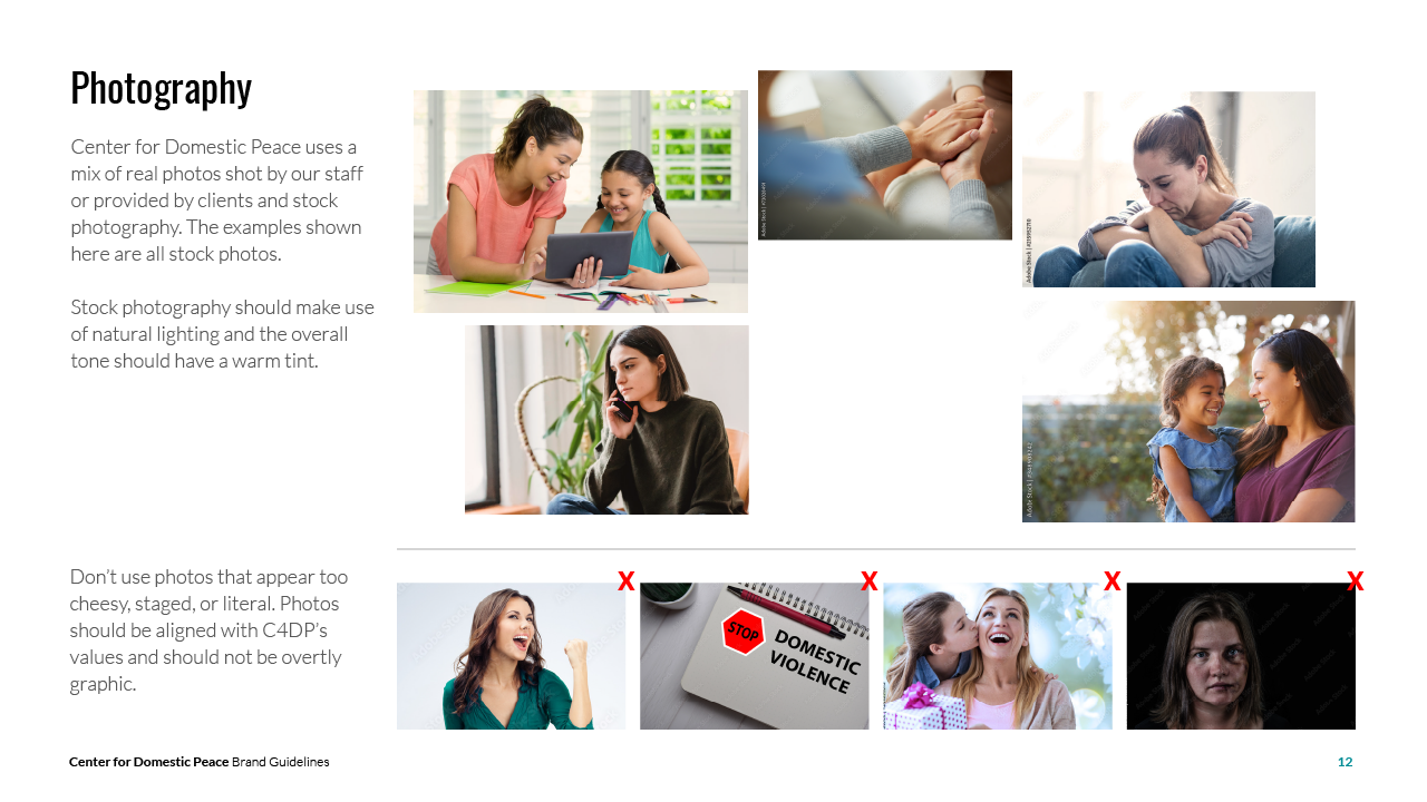 Center for Domestic Peace (C4DP) is a non-profit organization that serves Marin County. They lead a comprehensive community effort to eliminate domestic violence and provide services and programs to protect and enhance victim safety. I collaborated with them to redesign their marketing materials and create new brand guidelines.